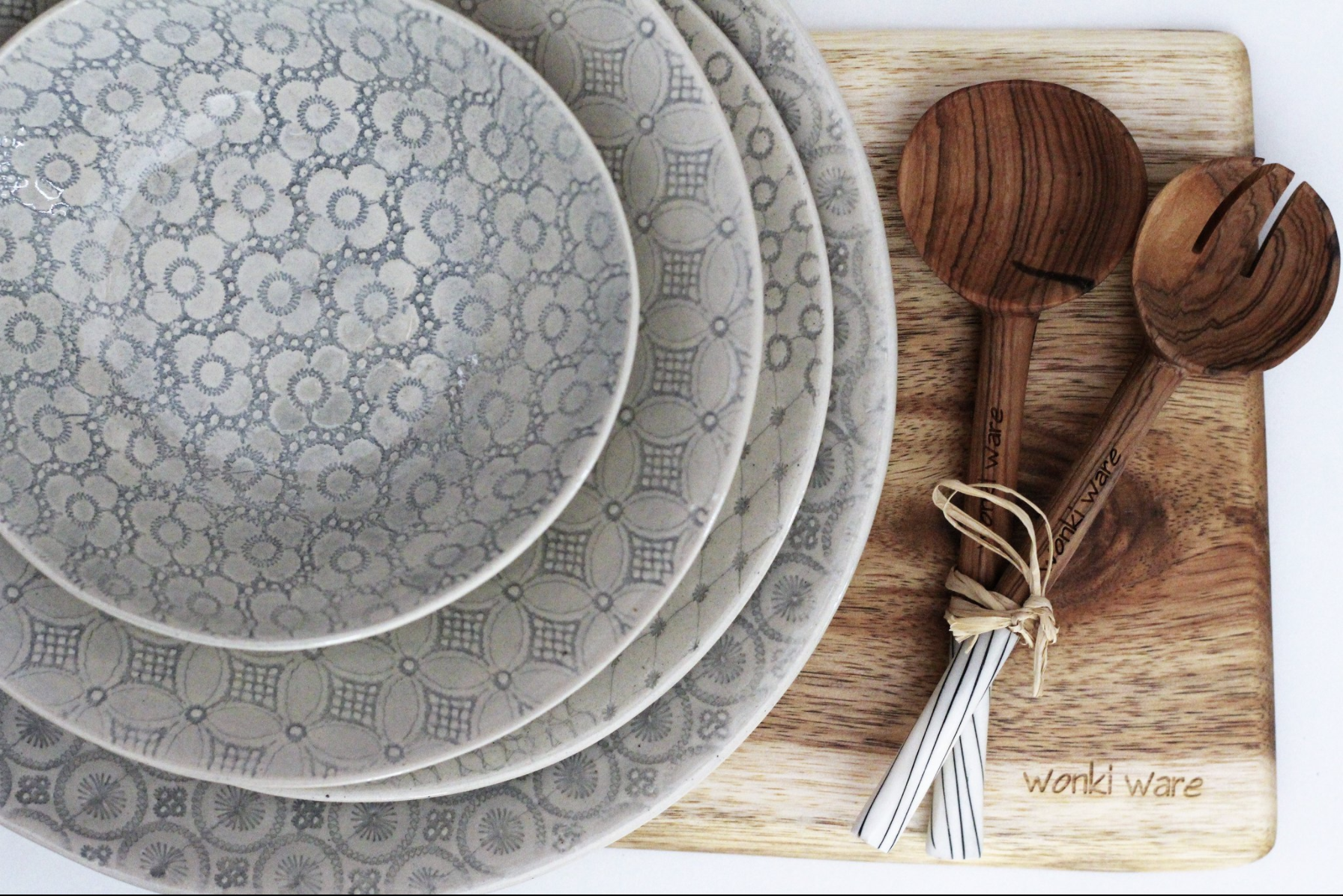 Well-loved in many South African homes, Wonki Ware started as a project for founder Di Marshall to keep herself “occupied” while her kids were at school. More than 20 years later, the studio employs about 70 people to create this one-of-a-kind pottery. The styles and designs change regularly and, because they’re made by hand, the products have a unique and organic look that add interest to any table.