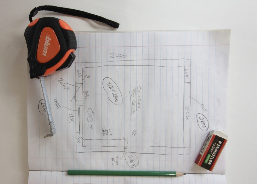 The old adage, “measure twice, cut once” rings true here. Once you’ve been around the room once, do a quick check over all your measurements and create your final sketch.