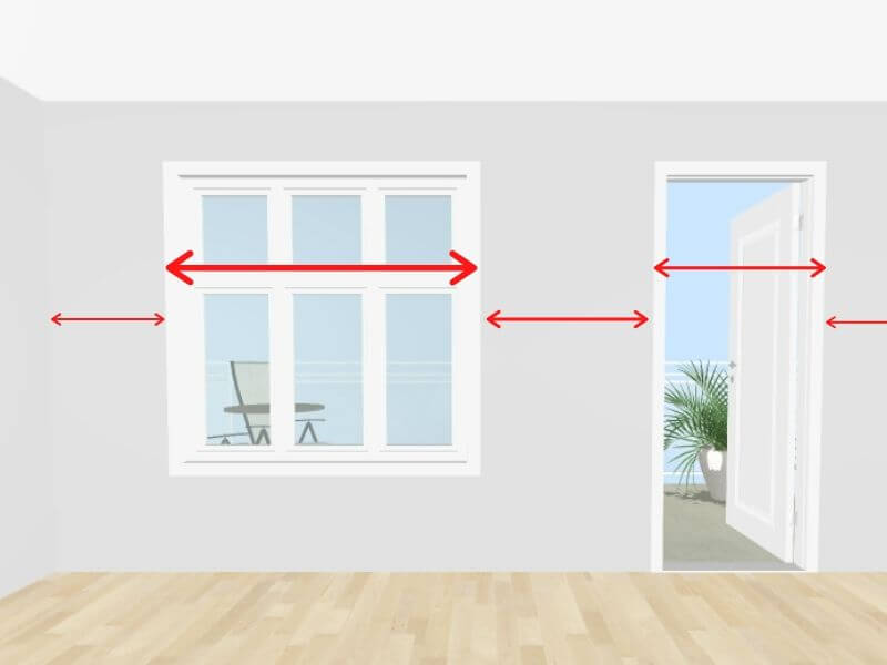 Pro tip: Check the accuracy of your measurements by adding each of the above dimensions (distance from corner to window edge, window width and distance from window edge to corner) together. If you get the same number as the wall width in 2 above (or very close to it), you’re on the right track.